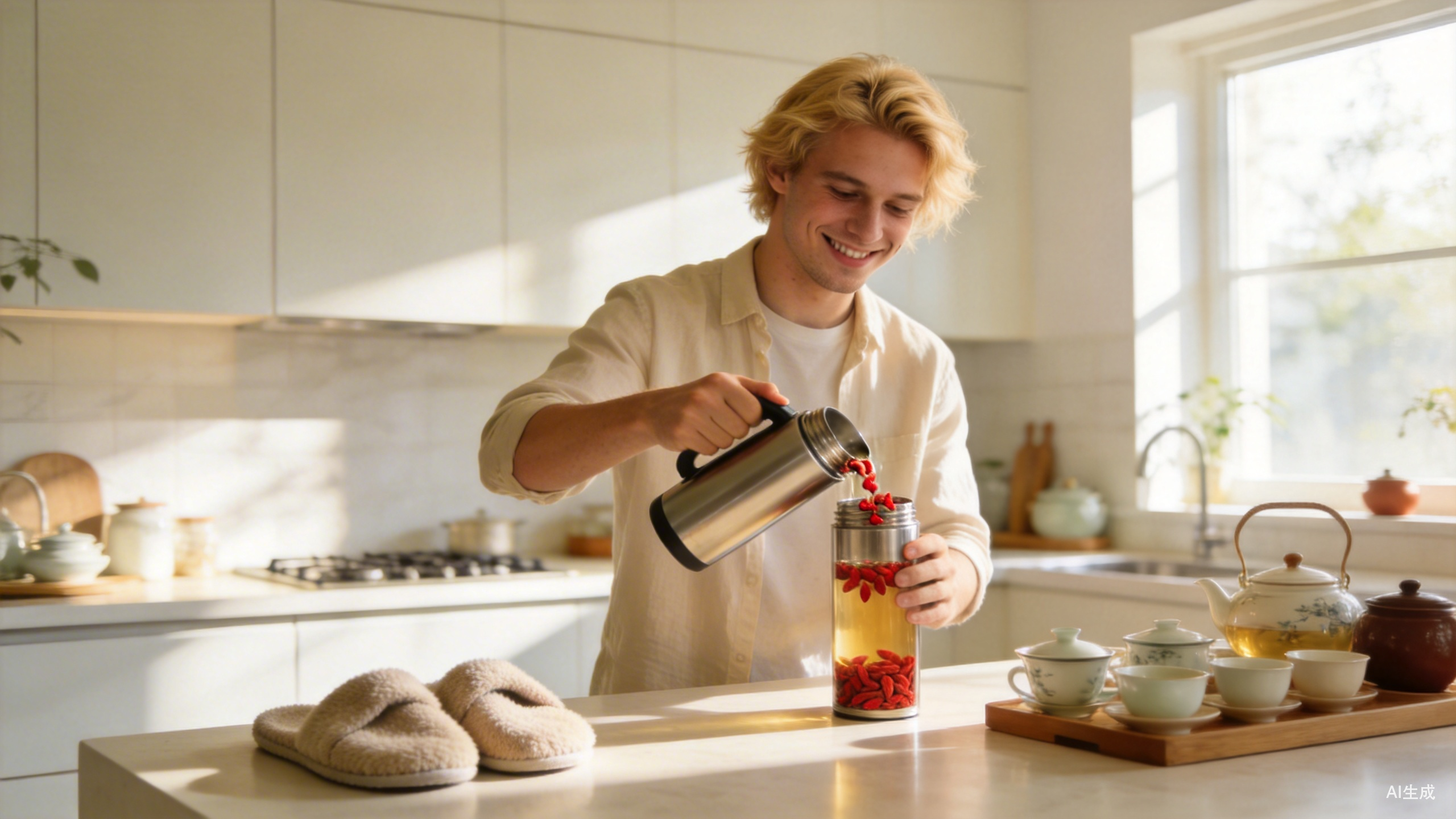 从去年年底开始,Sherry便不定期在视频中示范如何用保温杯喝热水、在家穿棉拖鞋、没事就熬点苹果雪梨枸杞糖水滋补身体......这些我们习以为常的生活习惯,到了洋抖却突然成了中式养生秘笈,老外逐帧学习后发现,原来只需要稍微改变一下原有的生活习惯,什么肠胃不适、头疼发热问题一下子全消失了。