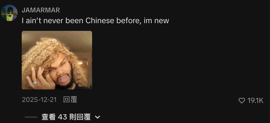 这套诡异又抽象的网络风潮后来被统一命名为“Chinamaxxing”,直译过来就是“成为中国人”或“极致中国化”,原以为就跟以前老外没事就哈韩哈日那样,“精中”热潮很快就会过气,可没想到2026年都过去三分之一,这事不仅没退烧,似乎还在欧美国家发生了持续的人传人现象。