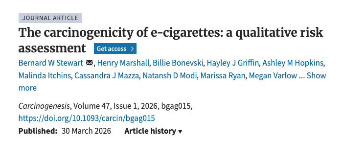 这篇3月30号发表的论文,分析了2017-2025年发表的电子烟研究论文,仅比较使用电子烟与不使用电子烟,排除与传统烟草的比较。