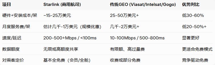 虽然星链综合成本已经比老一代卫星方案低了不少,但航司这笔钱砸出去,WiFi还不能收费,怎么看都像在做慈善。