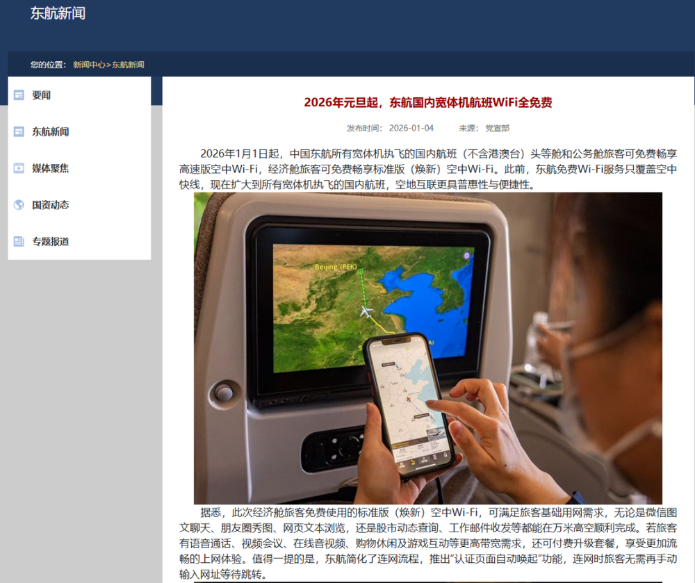今年元旦,东航宣布所有宽体机国内航班WiFi免费,这是国内航司迈出的重要一步。