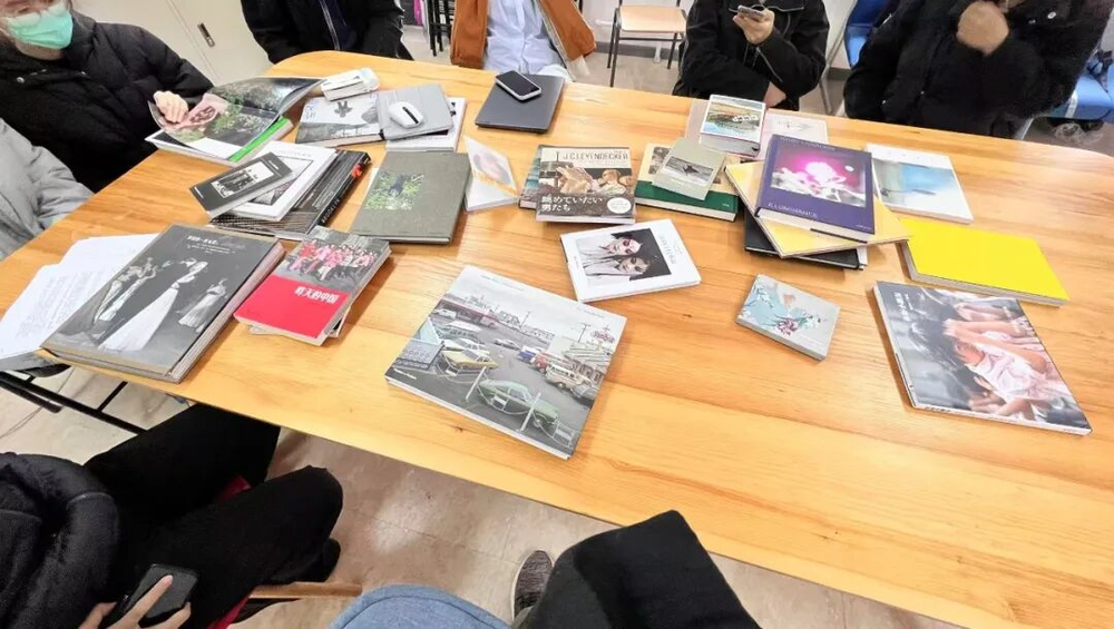 阿遇刚上大学的时候组织班级读书会一起讨论摄影画册。(图/受访者供图)