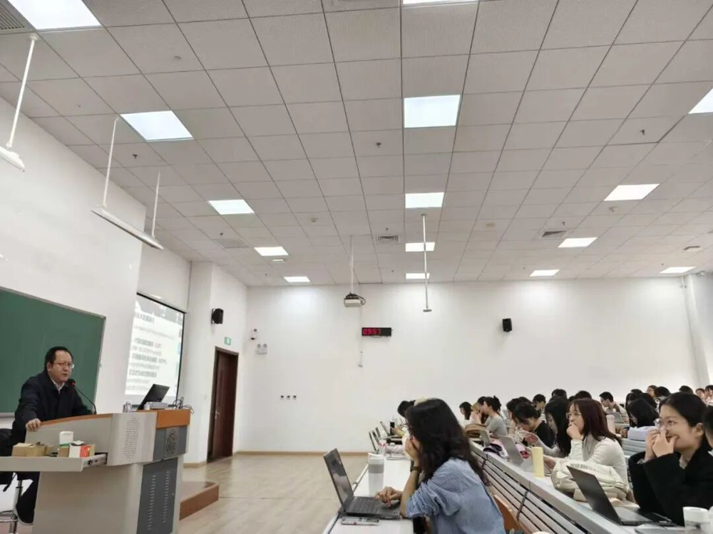 2025年,崔老师为翻译专业硕士研究生讲“AI翻译”课。(图/受访者供图)