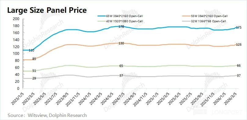 从2026年2月以来最面板价格再次出现提升的迹象,但不可忽视的是,受国补收紧、存储涨价的影响,电视/电脑等相关需求还是相对偏弱的。如果价格的回升仍主要来自于企业进行产能调节的影响,是难以持续的。