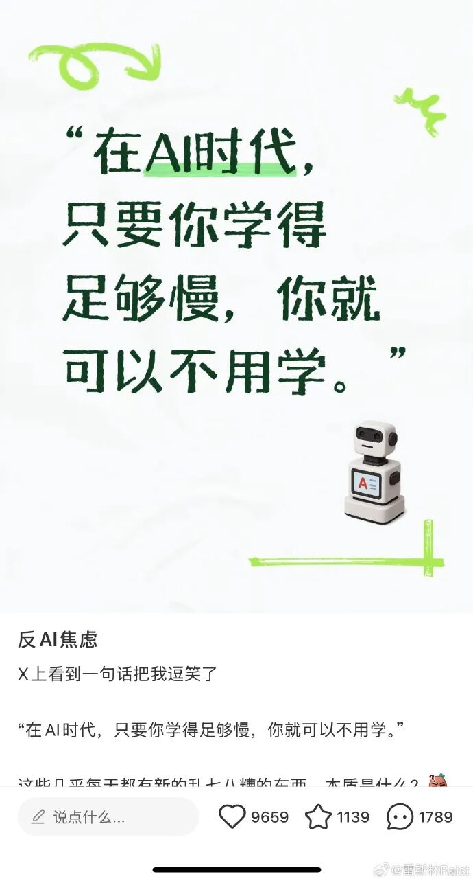最近看到一个观点,很有意思,说“AI时代,只要你学得够慢,你就不用学了。”