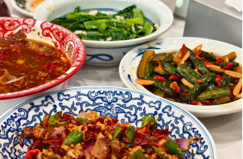 欧记大排档的菜品中不少是鲜辣的下饭菜。(图/叶橙子摄)