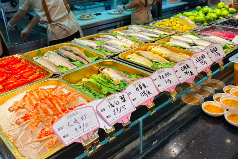 海底捞大排档店内的食材明档自取。(图/小红书网友@EugeneS)