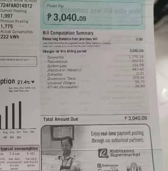 电费更是离谱,我屋里只有一个像工业废品般的小冰箱和一台笔记本电脑,平时省着开空调,一个月电费还要3000比索(约400元人民币)。要是夏天放开用空调,电费能直接飙到700多人民币。