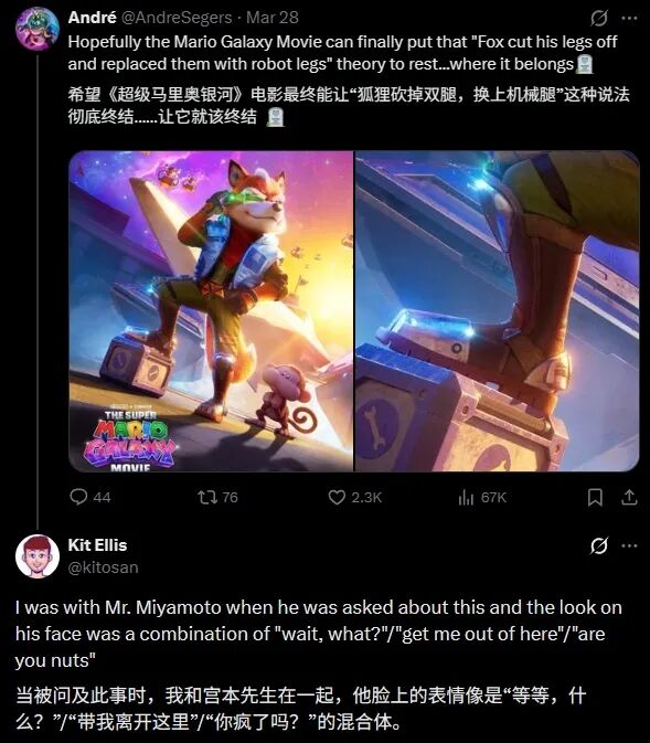 正如在正式上映之前,这部电影最受北美任天堂粉丝关注的地方不在于剧情是什么,而是一个关于《星际火狐》社区阴谋论在持续了16年之久后,终于借着这部电影得到了官方回应。