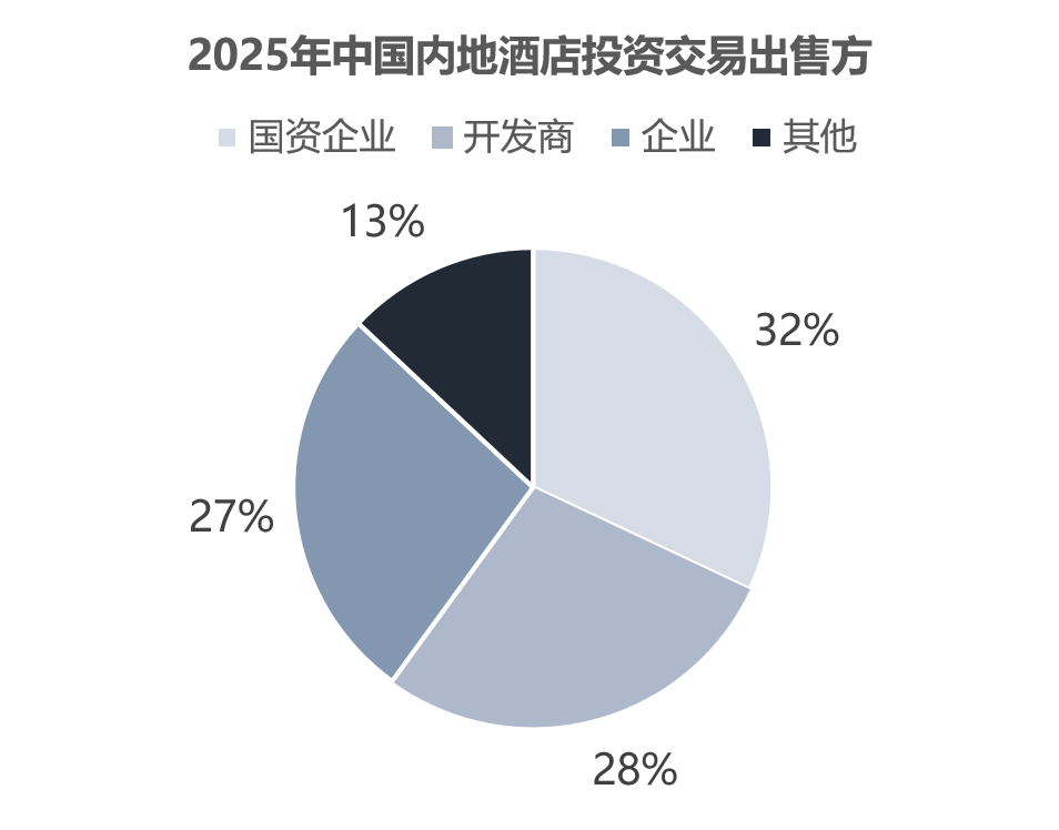 回溯历史,高星酒店曾是房企的拿地工具以及提升地块住宅售价的配套。克而瑞数据显示,截至2021年底,全国房企100强中只有15家没有布局酒店业务;房企成为当下密集抛售高星酒店的“主力军”之一。JLL数据显示,2025年国内酒店资产出售方中,约24%的业主为地产商,仅次于国资企业。