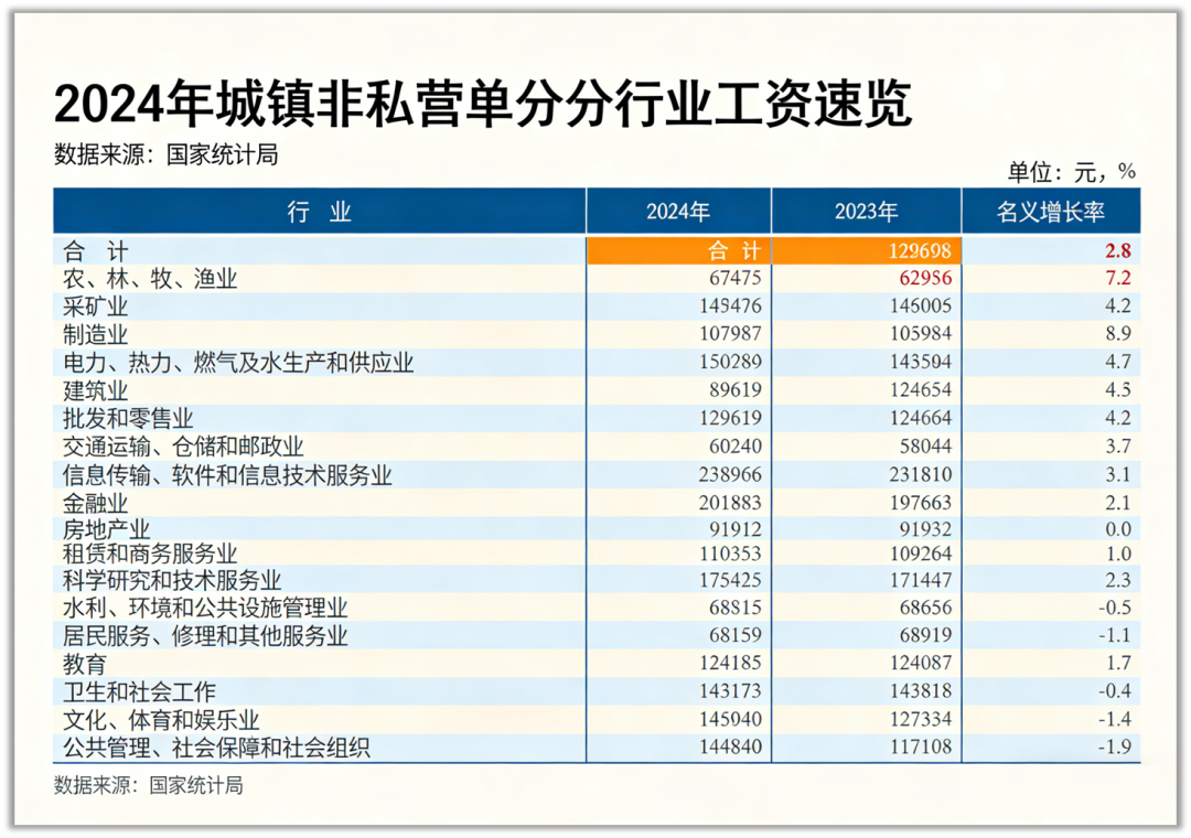 以国家统计局2024年数据为例,采矿业年平均工资高达14.07万元,远超制造业的10.79万元。