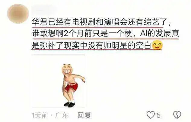 但华君的特殊之处在于,他是由网友“手搓”出来的,是从经典IP中“生长”出来的,是AI技术民主化的产物。这里面包含了许多“灰色地带”,面临着肖像及版权各方面的制约。