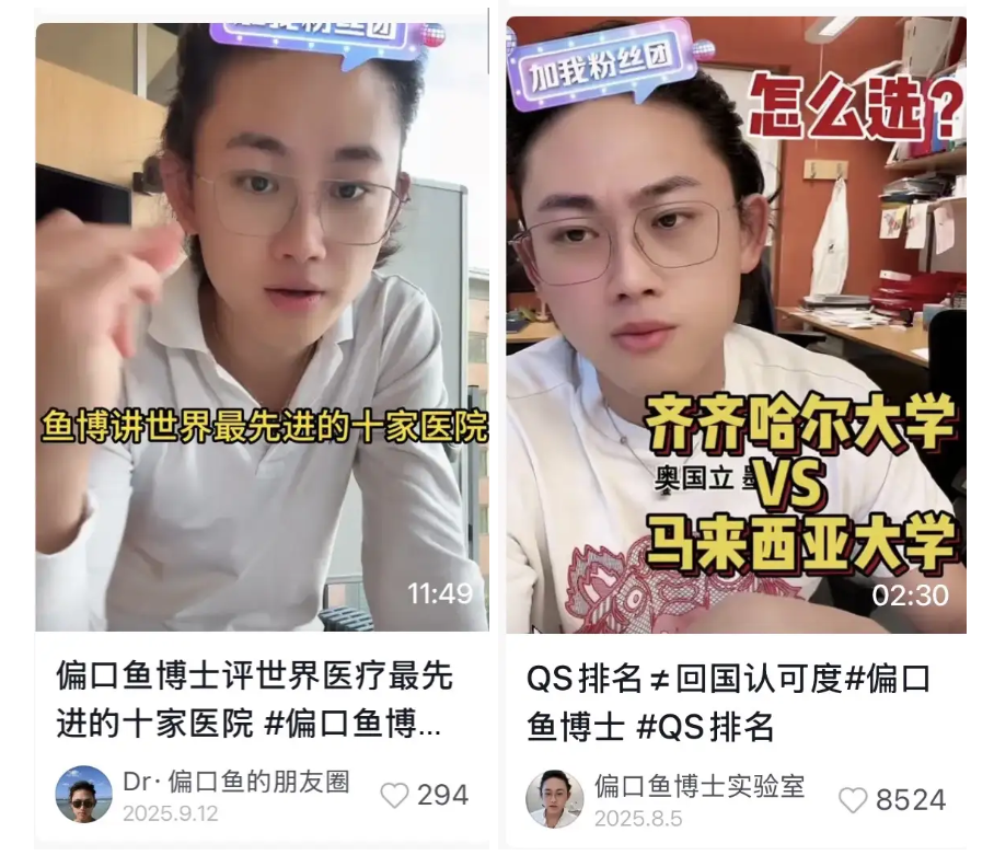 这个人叫偏口鱼博士。他其实是一名地道的专业医学生,复旦大学硕士后,又去了瑞典隆德大学读博士。