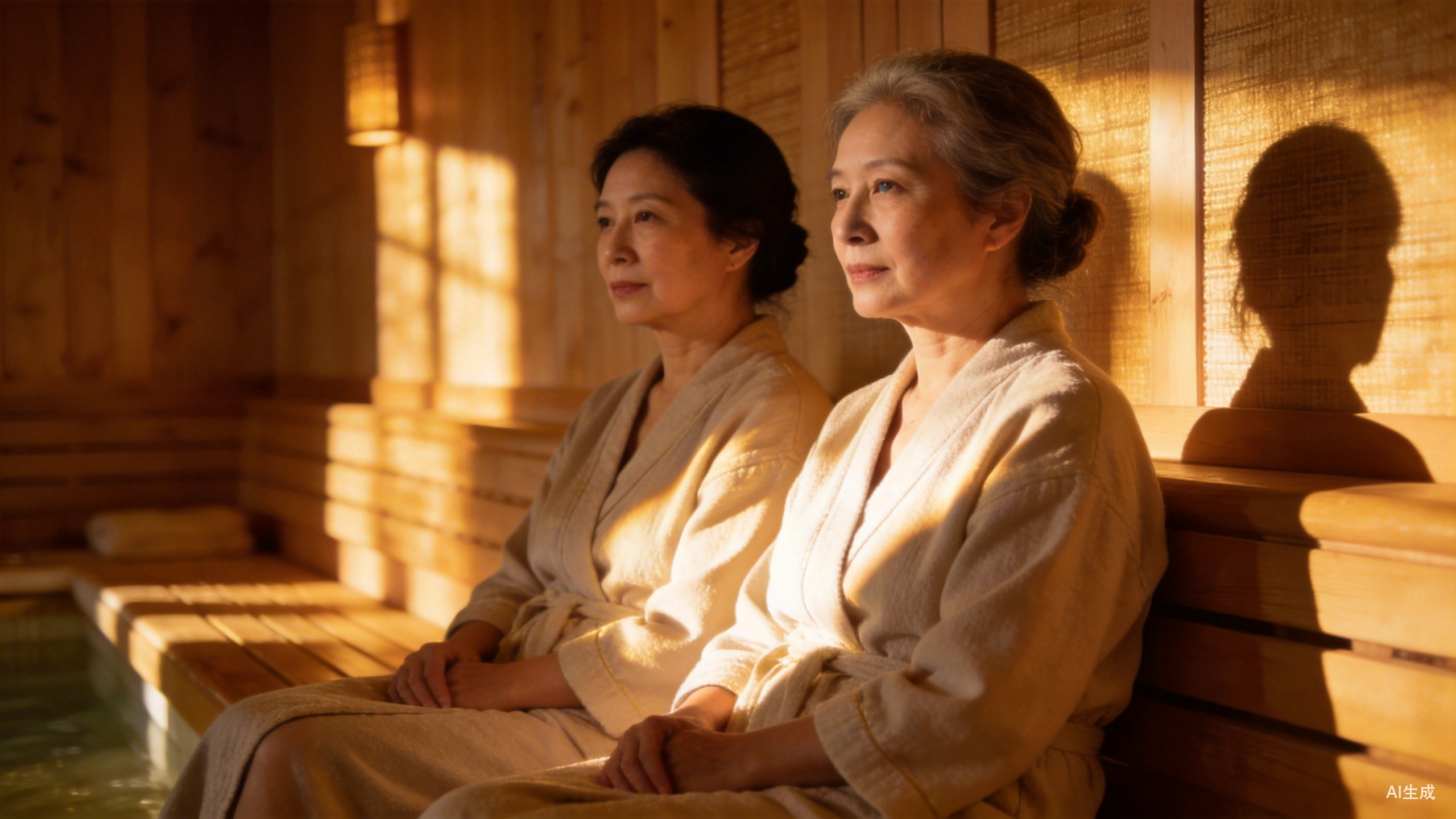 刚刚泡了澡,蒸了桑拿,整个人都松软了不少。我俩穿着温泉馆里的家居服,躺在盐蒸房的草席地垫上放空。