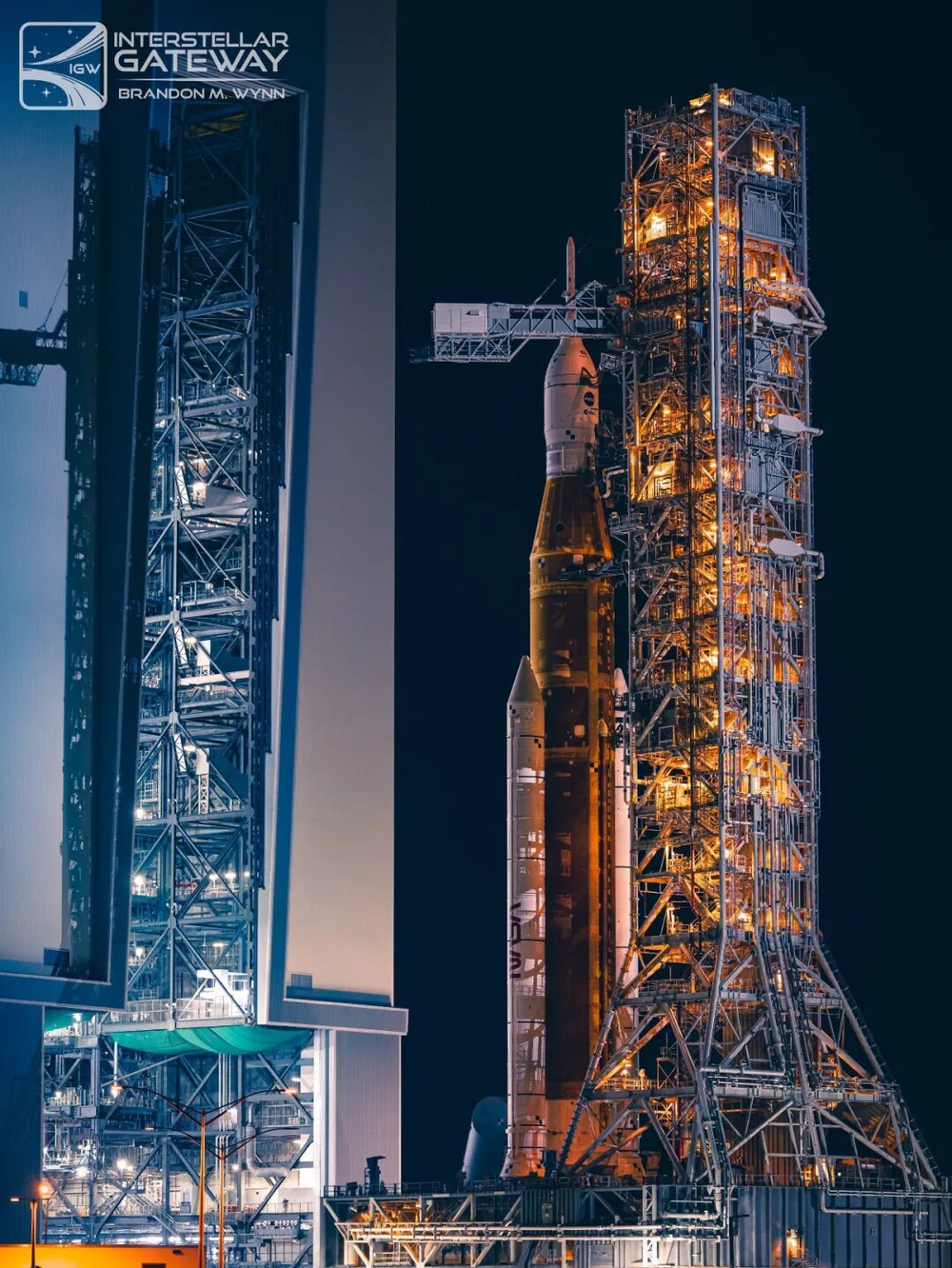 夜幕中的“航天发射系统”重型火箭。来源/NASA