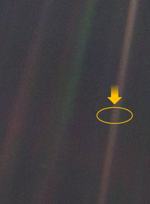 1990年2月14日,旅行者1号在60亿公里外拍摄的地球