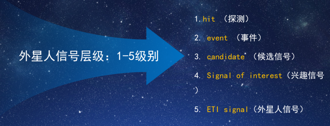 经过我们和国际同行近十几年的研究,我们把对外星人发出的信号等级总结成了5种:第一个等级是探测,第二个等级是事件,第三个等级是候选信号,第四个等级是兴趣信号,第五个等级才是真正外星人的信号。