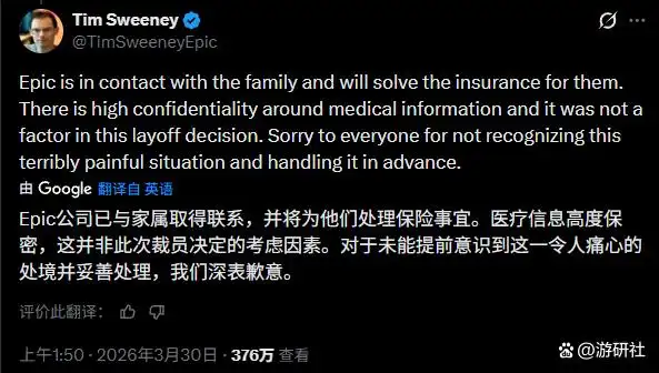 3月24日,行业巨头Epic Games向全员发送内部邮件,宣布裁员超千人,规模占其全球员工总数的16%至20%。