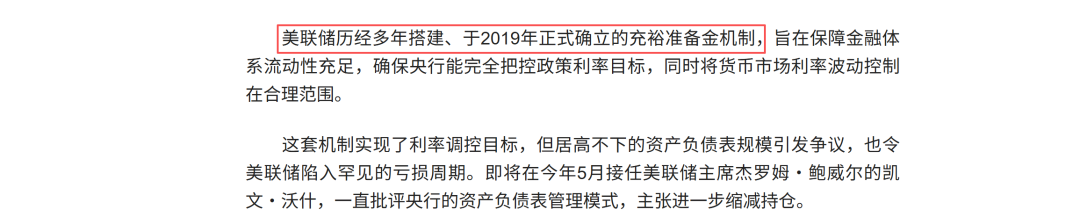 那么,为什么洛根对缩表的表述会激起市场剧烈地反应呢??这需要我们回归到当下美联储的充裕准备金体系。