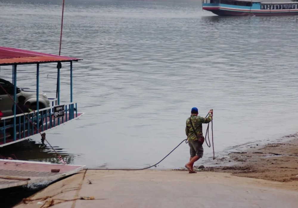 咸蛋黄色的夕阳将湄公河的流水染出一束橙红,多桨齐动的细长龙舟以一叶扁舟的姿态缓缓驶入这束红,带起一串冗长的波纹。