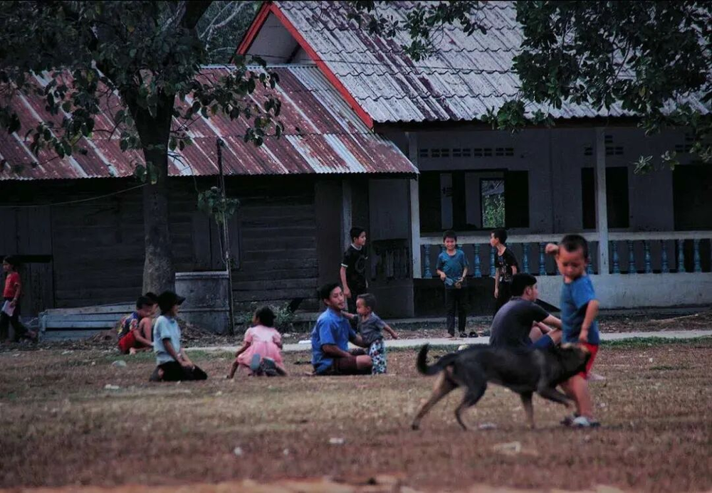 尘土飞扬的黄泥路,单层低矮的木质小屋,没有穿鞋子的孩子们在尘土飞扬的路边成群玩耍着,骑车到村子里面,偶尔会从村子里面的黑色木质屋子里半开着门露出好奇的黑脑袋来打探着这个突然闯入的外国人。