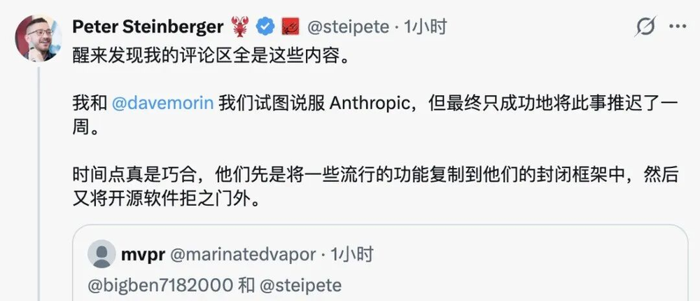 从早期以商标版权为由抗议“Clawdbot”这个名字,到现在直接切断订阅通道,Anthropic对OpenClaw的态度,一直在收紧。只是这一次,动作更直接,影响更大。