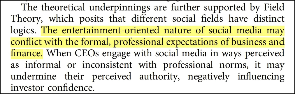 论文说的很清楚,不是发帖不好,而是投资人觉得在娱乐平台高调活跃,等于不稳重、不专业、风险大,于是就不敢投。