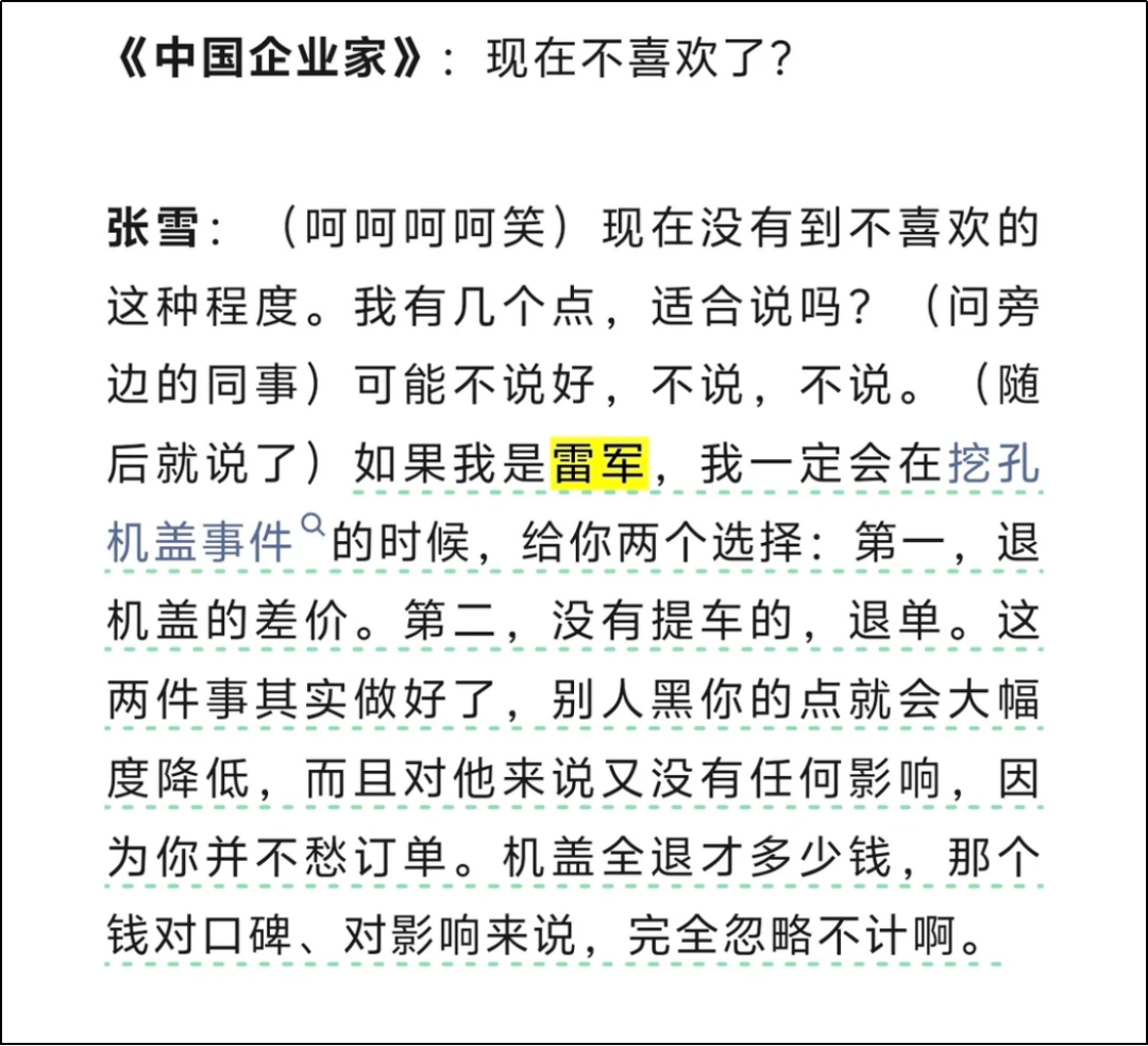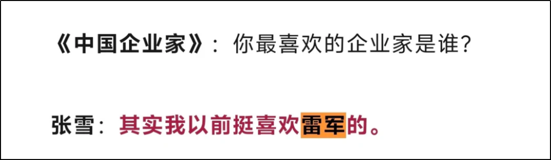 张雪说是雷军,但他说的是以前挺喜欢的。