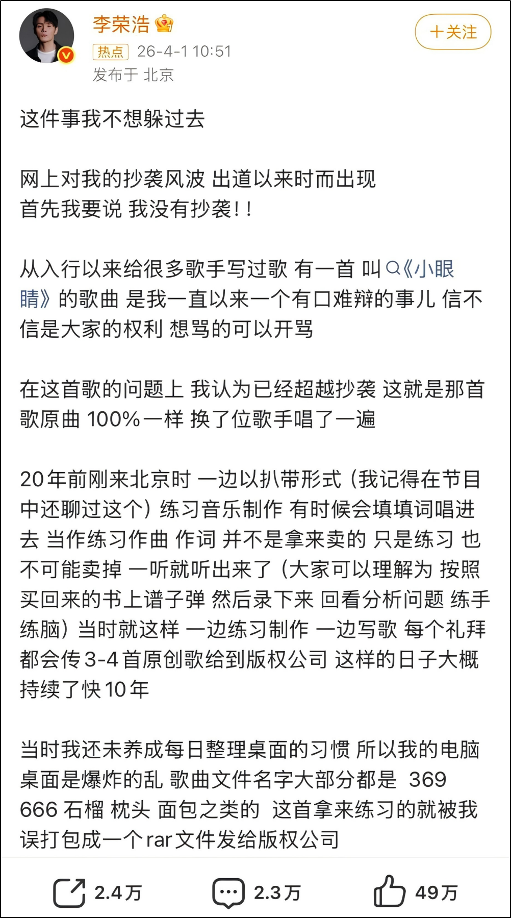 这时候张雪的出现,就像李荣浩喜欢发没有标点的长文一样,正式不正式不重要,让网友觉得公众人物有情绪才重要。