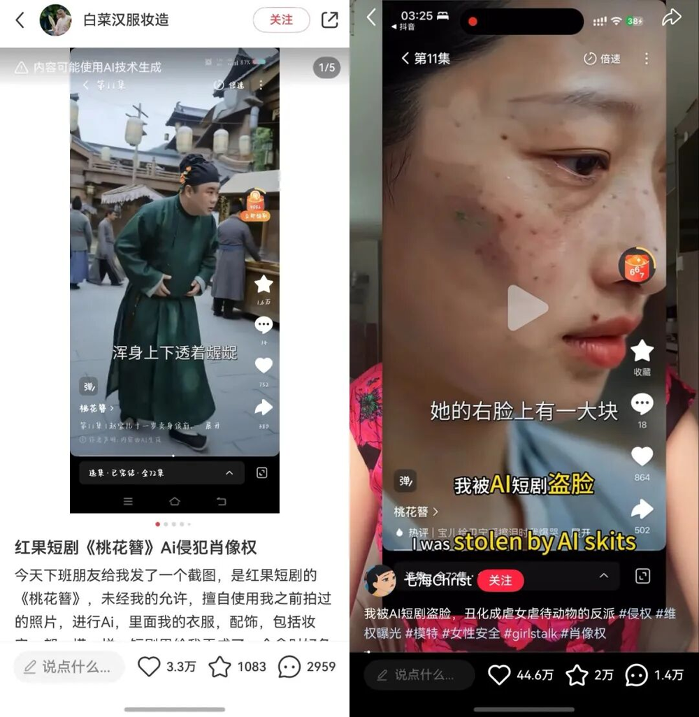 同一部短剧,接连两名素人“被出演”。AI短剧的侵权对象,正从明星转向更脆弱的普通人——更加肆无忌惮,也更加防不胜防。
