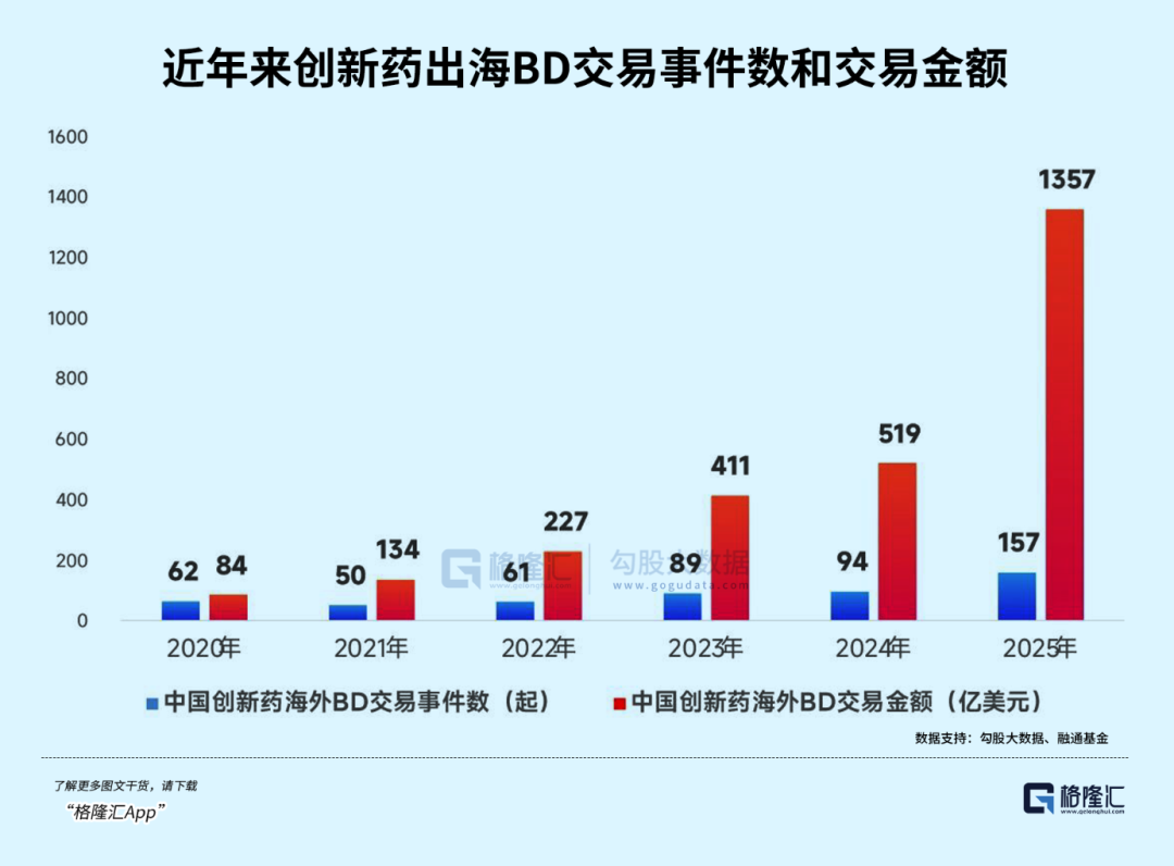2025年全年对外授权交易总额达1356.55亿美元,同比增长250%,占全球交易总额的49%,超越美国成为全球创新药对外授权第一大市场。