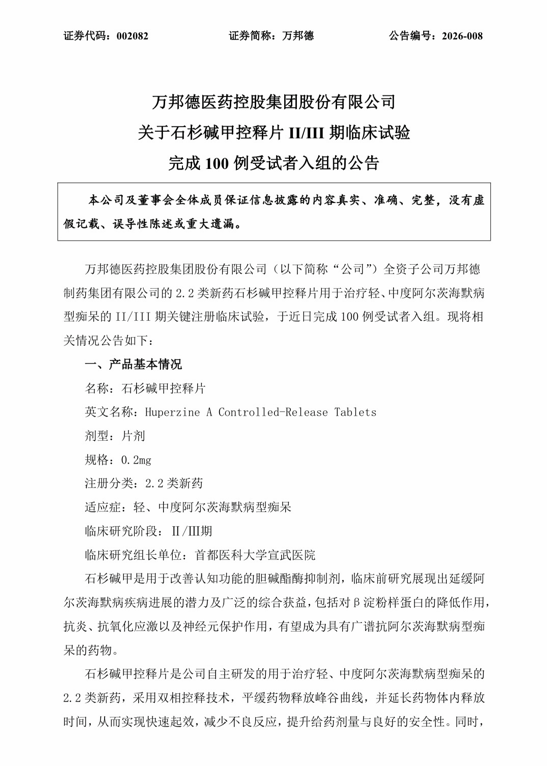 回到万邦德身上,其向创新药的转型正处于初期,石杉碱甲系列药品也均处于临床初期。