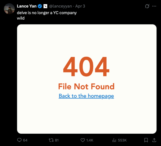 六个月前,Garry Tan还在Twitter上给Delve抬轿子:「Delve is now a top YC startup」。
