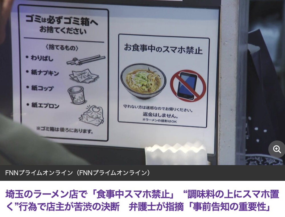 有人发我一张图啊,说日本有个拉面店不让人吃饭玩手机。
