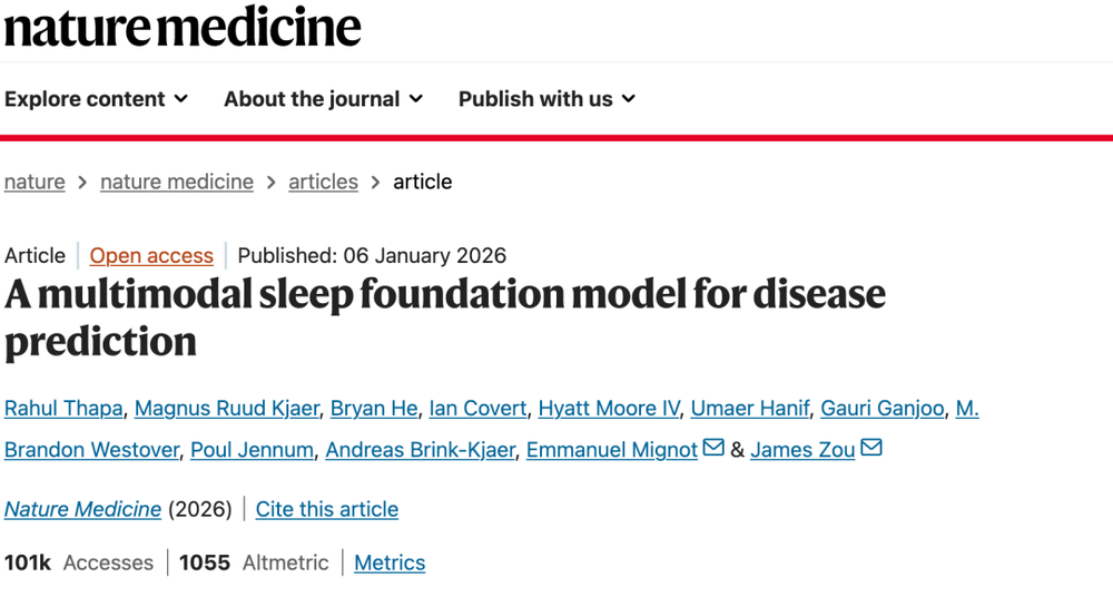 就在最近,斯坦福大学团队在顶级医学期刊《Nature Medicine》上发表了一项重磅研究,他们开发了一个名为SleepFM的AI基础模型,只是通过阅读我们一个晚上的睡眠数据,就能预测未来患130种疾病的风险,甚至包括我们还能活多久。