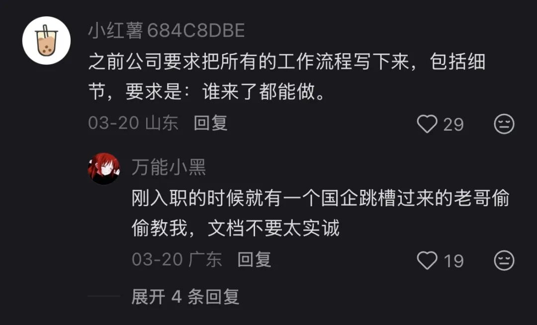 公司鼓励员工写工作文档,将零散的工作记录直接转化为结构化的知识库,思考过程、决策依据、分析框架,写得越详细越好。协同办公软件也早已升级,能基于企业上传的所有文档、知识库甚至聊天记录进行智能问答。