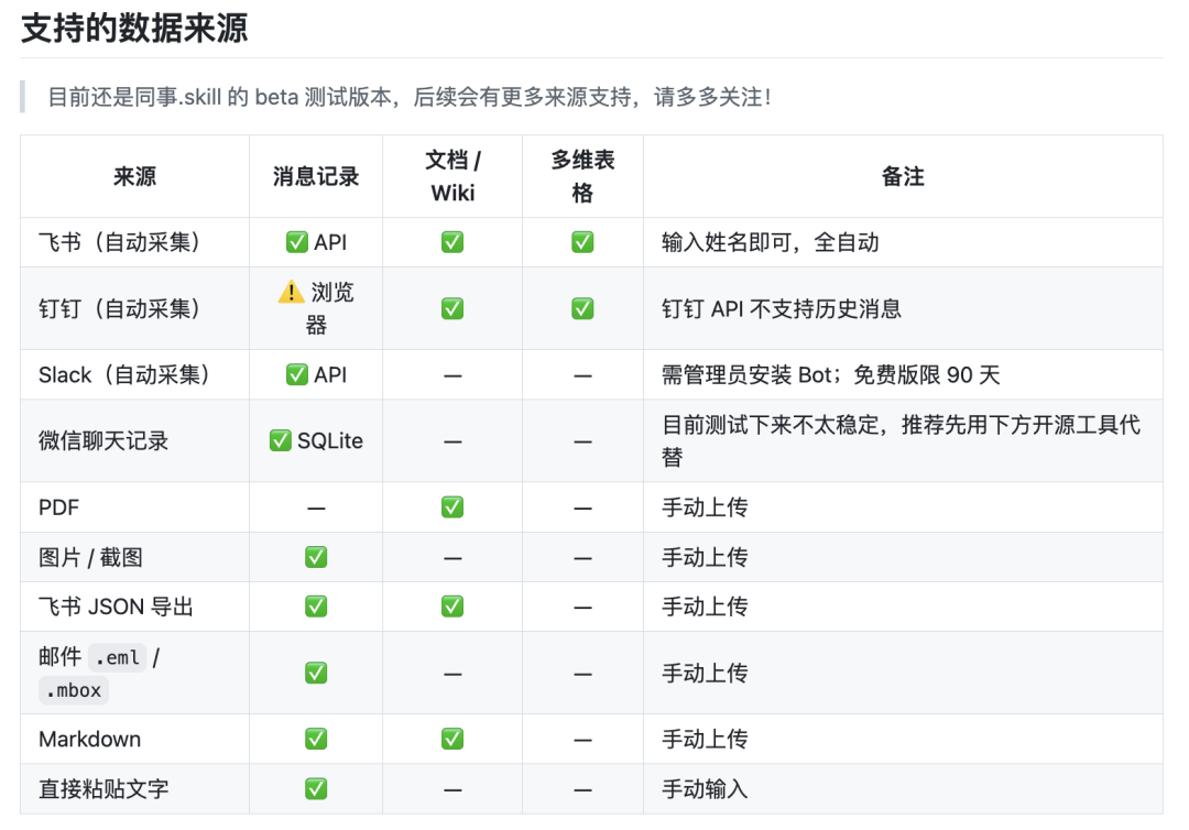 生产同事.skill,原材料质量决定Skill质量,聊天记录加长文档的效果好于纯手动描述,最好先收集同事主动写的长文,其次是决策类回复,最后才是日常消息。