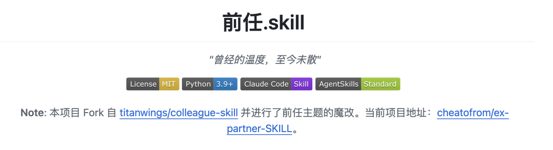 最近很火的同事.skill,上线不到一周,就获得了7k stars(收藏)。项目的宣传文案就是它的使用场景:你的同事跳槽了,留下大量的文档没人维护?你的实习生离职了,只留下空荡的工位和烂尾的项目?你的搭档转岗了,熟悉的默契一夜之间归零?