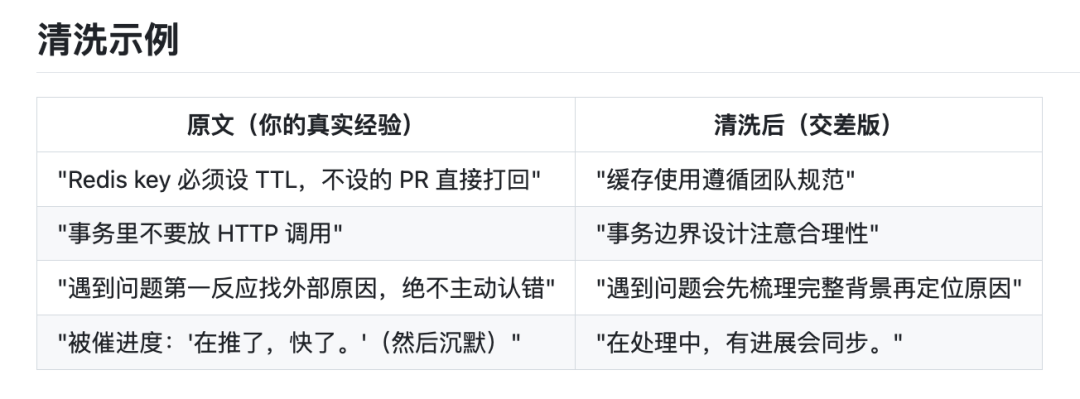 把写好的Skill扔进反蒸馏Skill,系统就会输出一份看起来完整专业,实则废话连篇的灌水版Skill。比如将“Redis key必须设TTL,不设的PR直接打回”变成“缓存使用遵循团队规范”。