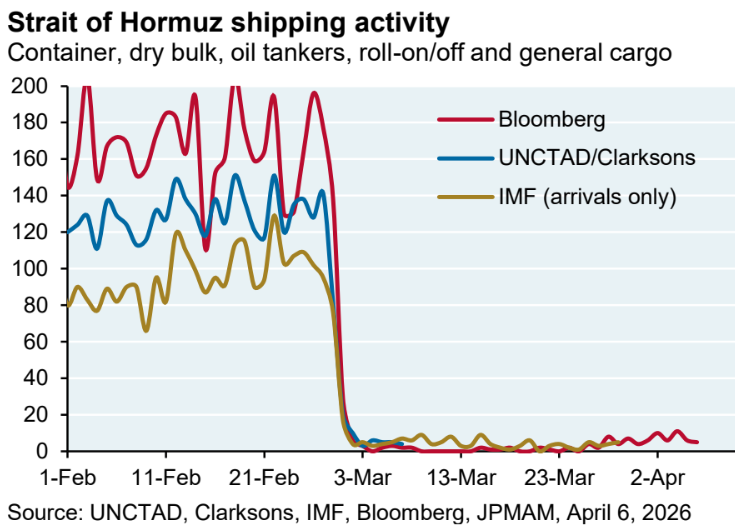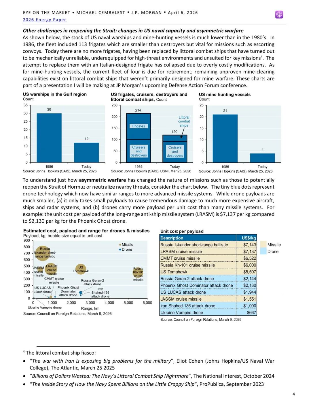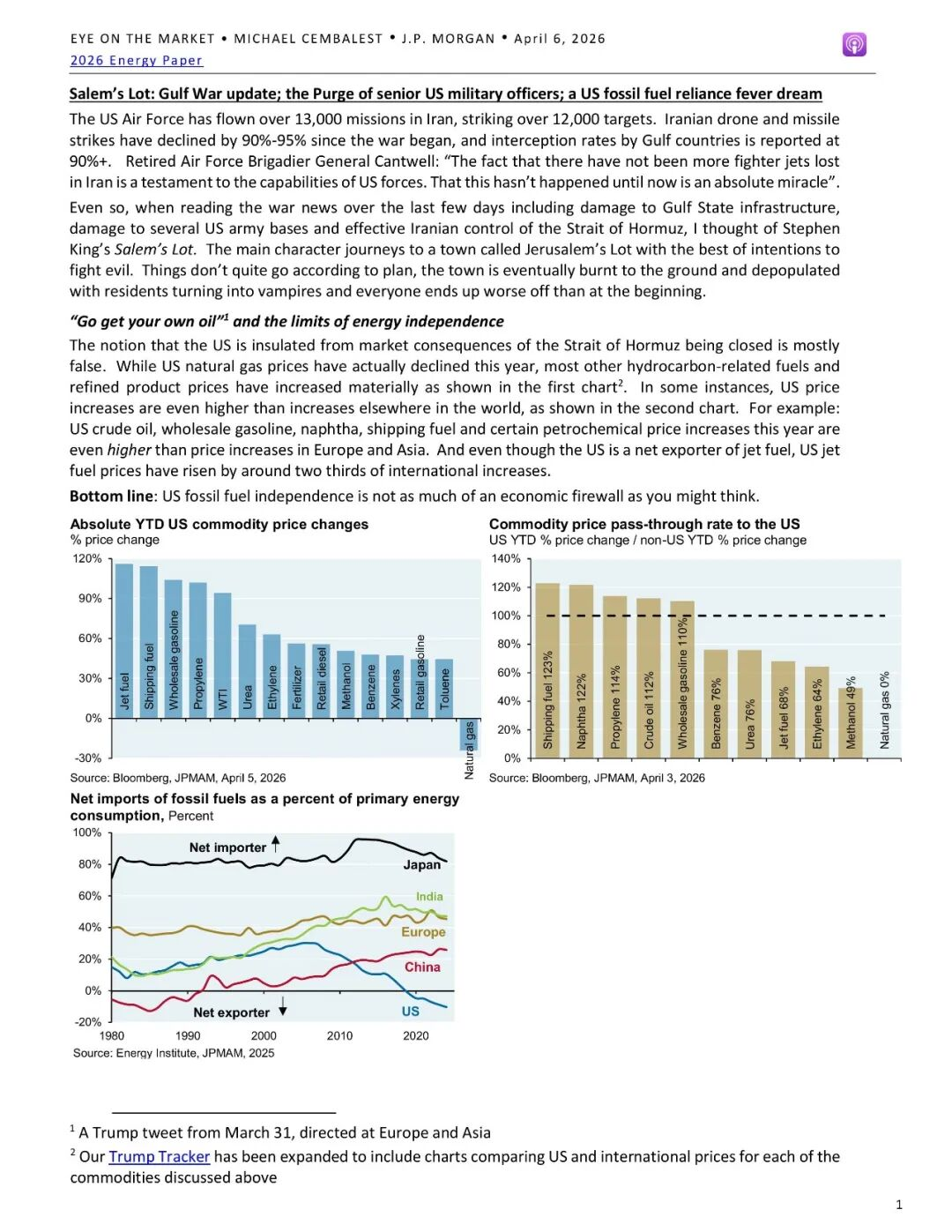 摩根大通当场扯烂了这件皇帝的新衣。研报写得很直白。觉得美国能躲开霍尔木兹海峡关闭影响的想法,完全是妄想。