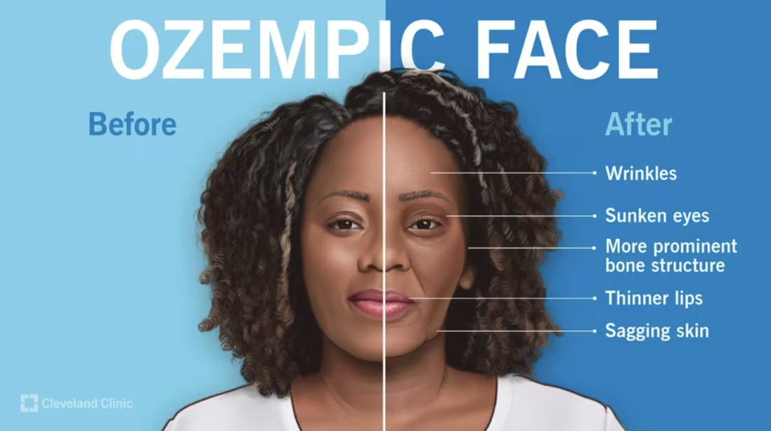 由于减重效果太好,这款现象级产品推动了“Ozempic Face”的出现,简称“司美脸”,指人们的脂肪和肌肉流失过快,出现皮肤松弛、面部凹陷的情况。甚至有企业对此开启针对性的制药研究。