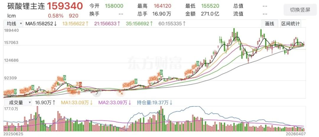 近几个月以来碳酸锂价格走势