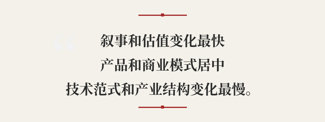 一家公司在任何时刻都被嵌入在不同速度的层级中:叙事和估值变化最快,产品和商业模式居中,技术范式和产业结构变化最慢。