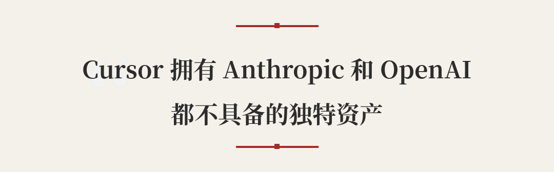 Cursor 拥有 Anthropic 和 OpenAI 都不具备的独特资产:每天 1.5 亿行企业代码的真实编码行为数据。