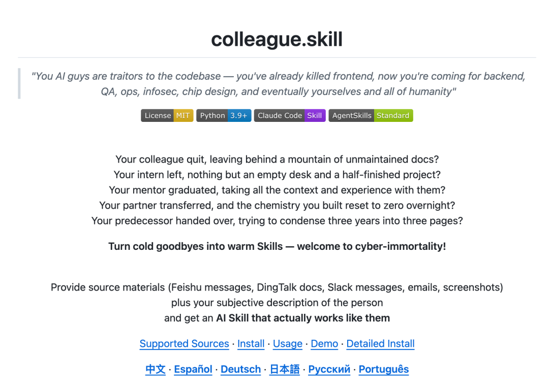 上周,一个叫「同事.skill」的GitHub项目火了。