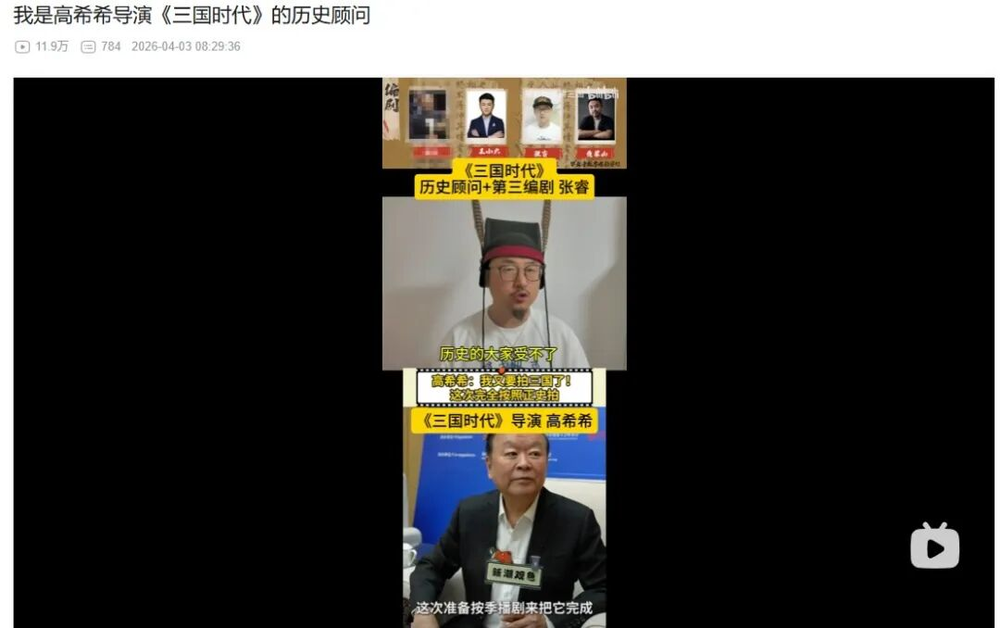 抛开意料之中的玩梗,《三国时代》历史顾问、编剧之一张睿(@星彩她爹讲三国)发视频强调,这次是真的在严肃对待历史,而高导对还原历史堪称“吹毛求疵”,甚至会“历史得大家受不了”,剧中“全是高智商博弈”“人物很丰满,不纸片(人)”。