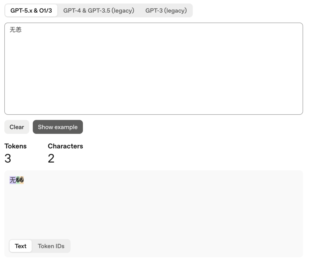 更离谱的是,我们之前分享过的GPT-4o词元污染,输入一串8个字符的短语,在AI大模型眼里只占用了1个Token。而对于一些非常用字,例如「无恙」,ChatGPT会将其编码成3个token,因为「恙」会变成乱码。