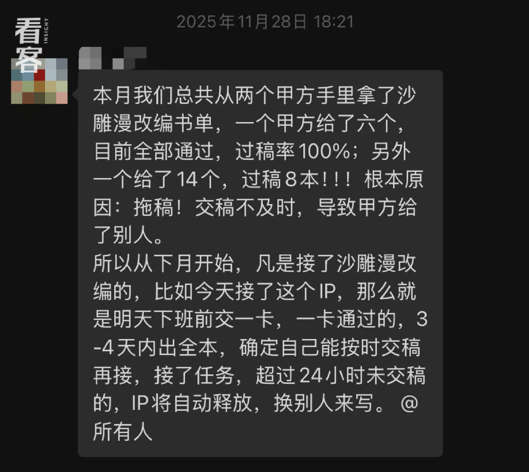 他那边认识一个网文工作室,本来干得不咋地快黄了,就因为开始做这个漫剧了(AI动漫),然后在社交平台上拉到了一个老板,投了他几百万,他直接把团队迁到了杭州,包吃包住,每天让他们看剧本、筛剧本。