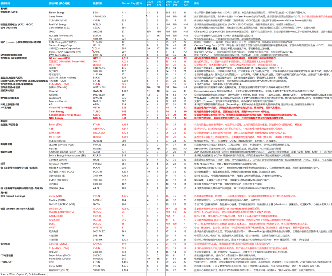 在当前北美电力结构性短缺的背景下,海豚君预计三者将长期并存,形成“燃机基荷、内燃机调峰/分布式、SOFC快速部署”的多元化供电矩阵。亚马逊、谷歌等巨头将燃气轮机作为核心主电源的案例,印证了其作为“当前AIDC发电最优解”的地位,而燃气内燃机与SOFC则是不可或缺的有效补充。