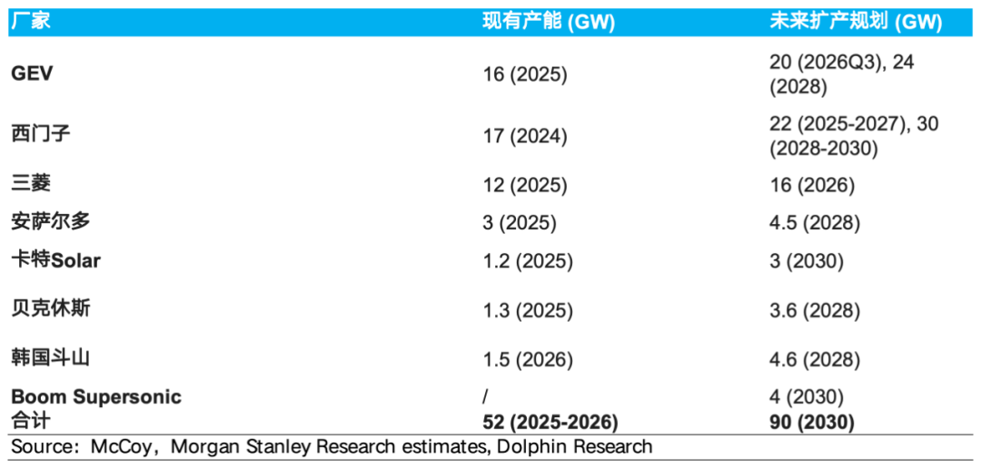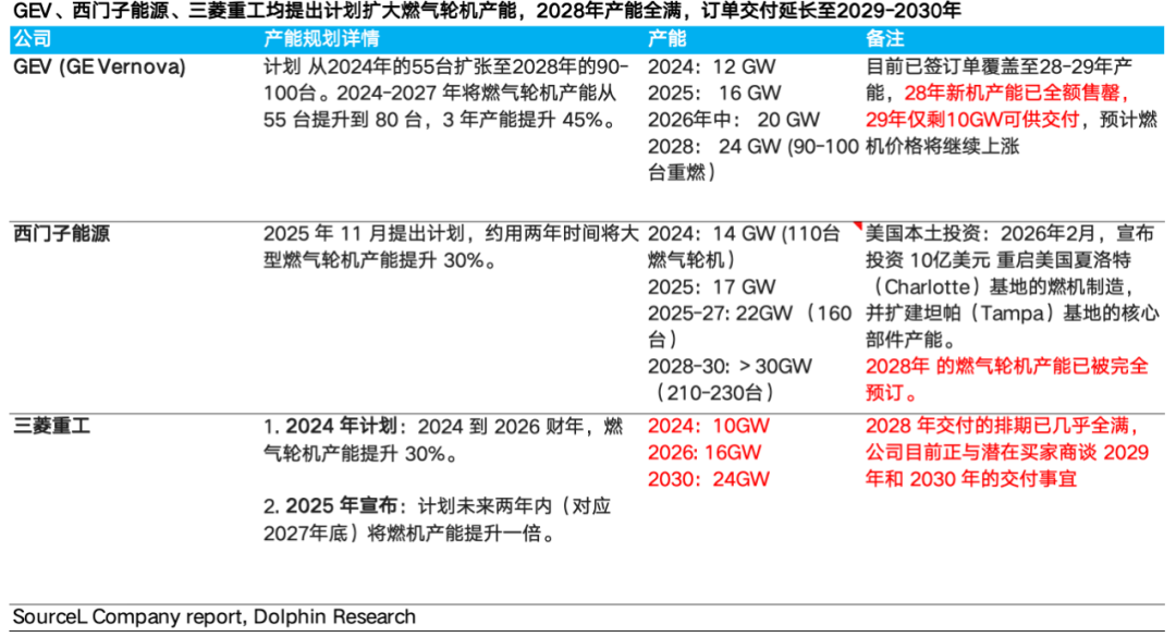 为应对爆发的需求,三巨头均公布了激进的扩产计划(如GEV计划至2028年产能提升至24GW,西门子目标30GW+,三菱计划两年内翻倍)。